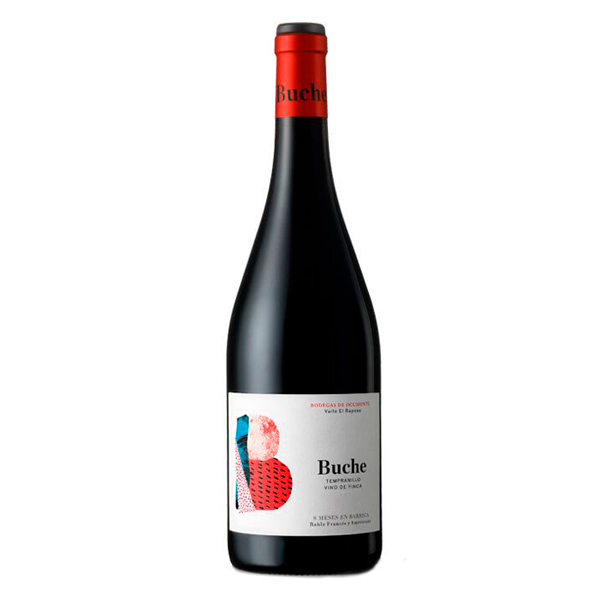 Buche Tinto Tempranillo, fresco y sabroso, plantado en espaldera y sin riego. Sus suelos son arcillosos procedentes de una zona con altitud 560 metros sobre el nivel del mar. El Raposo, es como se conoce a esta zona donde se encuentra un balneario con un microclima particular haciéndola una zona muy fresca con cambios térmicos entre el día y la noche. La vendimia se la efectúa de forma manual, teniendo en cuenta la selección de racimos tanto en el viñedo como en la bodega. Finalmente este vino es envejecido durante 8 meses en barricas de roble francés y americano.